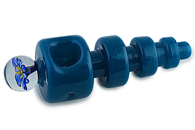 Stylishly U.S. color glass hand pipe in the shape of a delightful 3D bloom, topped with a marble behind the bowl chamber!
