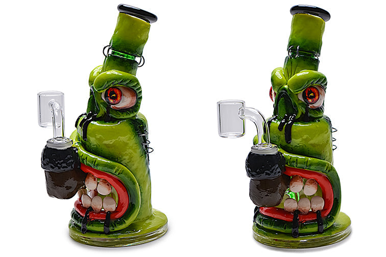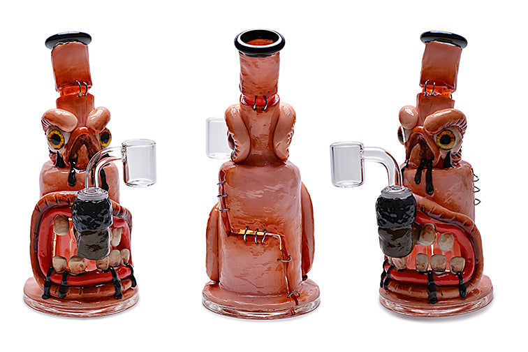Get your hands on this one-of-a-kind Clay Monster Rig! Featuring intricate details and bold colors, this 7" clay over glass creation is sure to be a conversation starter. Unleash your inner monster with this truly unique and eye-catching piece!