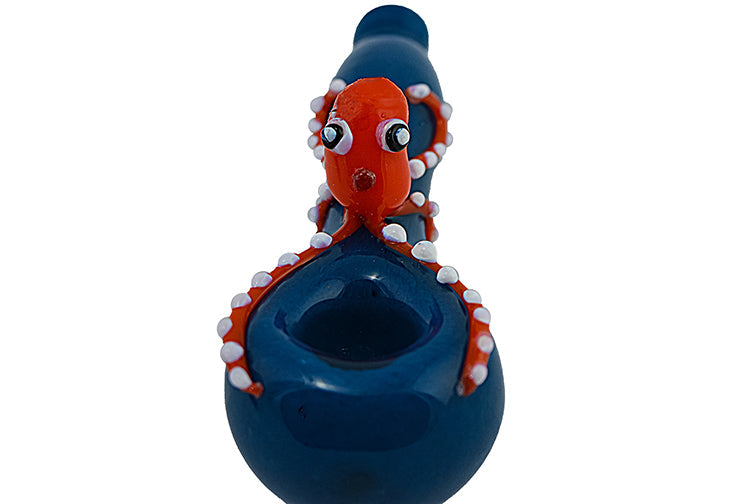 Behold! A brilliantly-hued glass pipe, complete with an ever-watchful octopus perched atop!