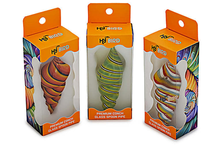Immerse yourself in the beauty of the ocean with HyBird's Conch-shaped glass pipe, available in a range of vibrant colors. Remind yourself of the calming waves and let this pipe transport you to a peaceful state of mind.