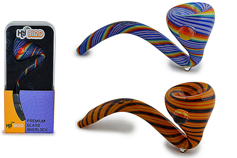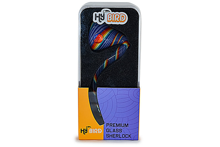 Take a journey down the rabbit hole with the HyBird Sherlock Pipe! This enigmatic blend of art and functionality is the perfect accessory for your next mystery-solving adventure. With vibrant wig-wag colors, this hand pipe is sure to be the bee's knees at your next gathering!