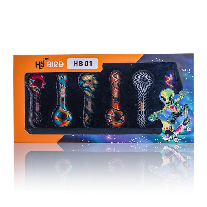 Experience the dazzling allure of our HyBird Wig Wag Spoon! Each display contains a vibrant array of 6 color glass pipes that will add a pop of excitement to your smoking routine. Indulge in the variety of shades and choose the perfect one to suit your unique style.