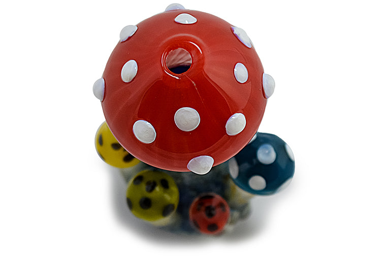 Get your hands on this crazy cool hand pipe! Our mushroom-shaped pipe provides a unique smoking experience with its high quality glass construction and vibrant, intricate design. It's a must-have for pipe lovers that don't take themselves too seriously!
