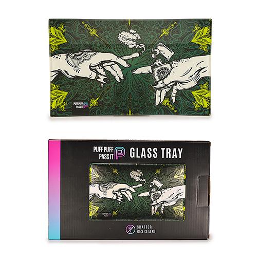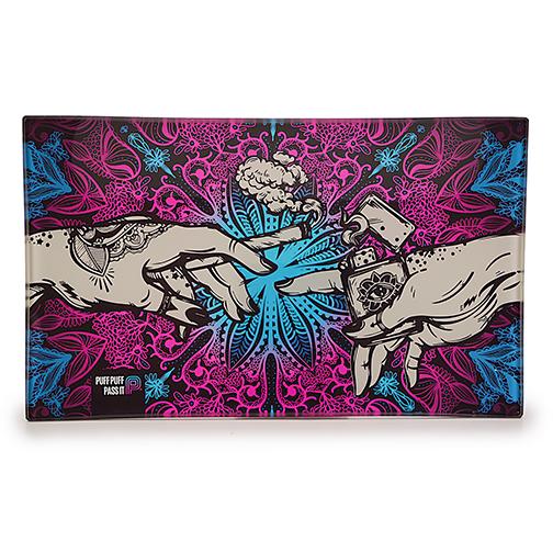 Puff Puff Pass It new shatter-resistant glass tray. Available in 5 vibrant colors.