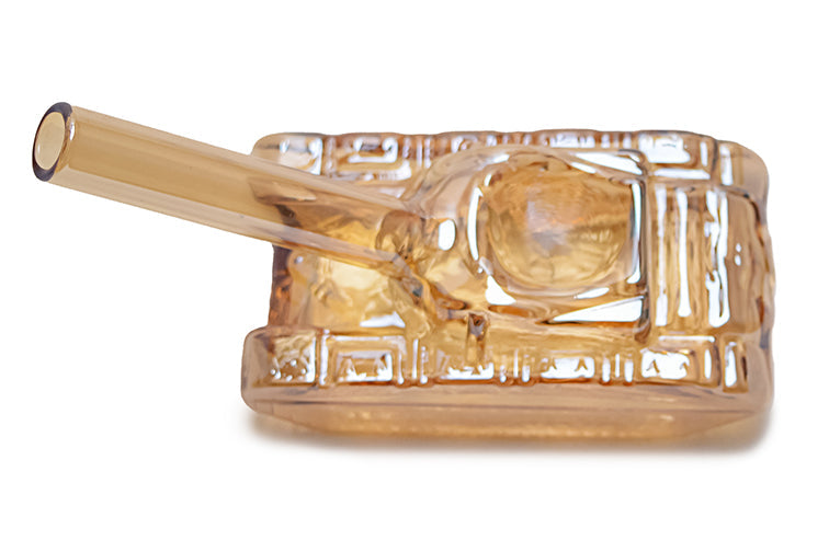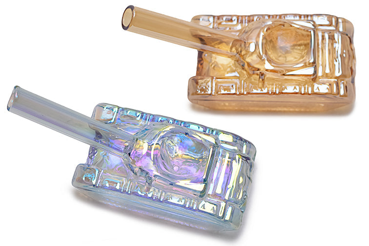 Grab this stylish tank-shaped glass hand pipe and give your sesh an electroplated, color-packed punch!