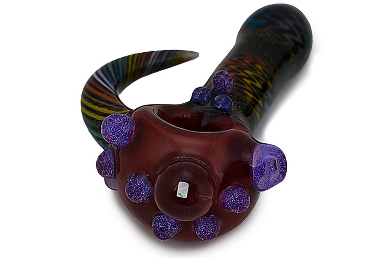 Spice up your smoking experience with the Side Horn Dichro pipe featuring zig wag American colors and a hidden opal surprise inside the marble.