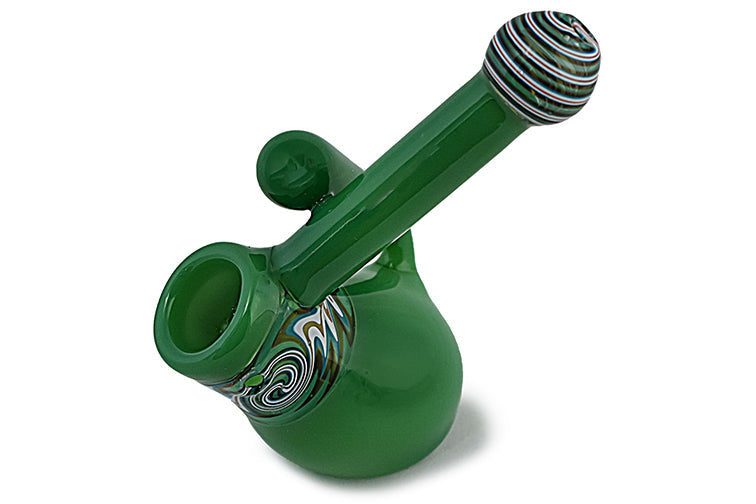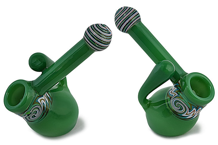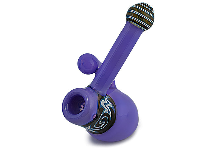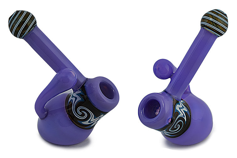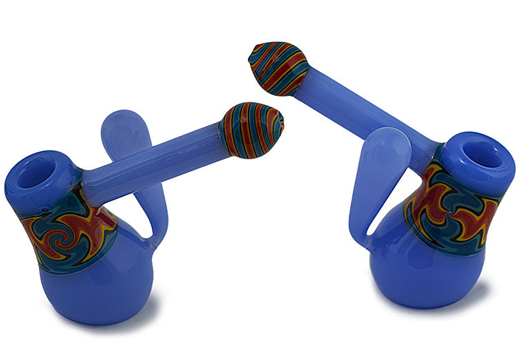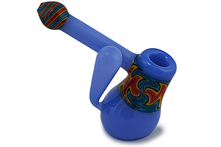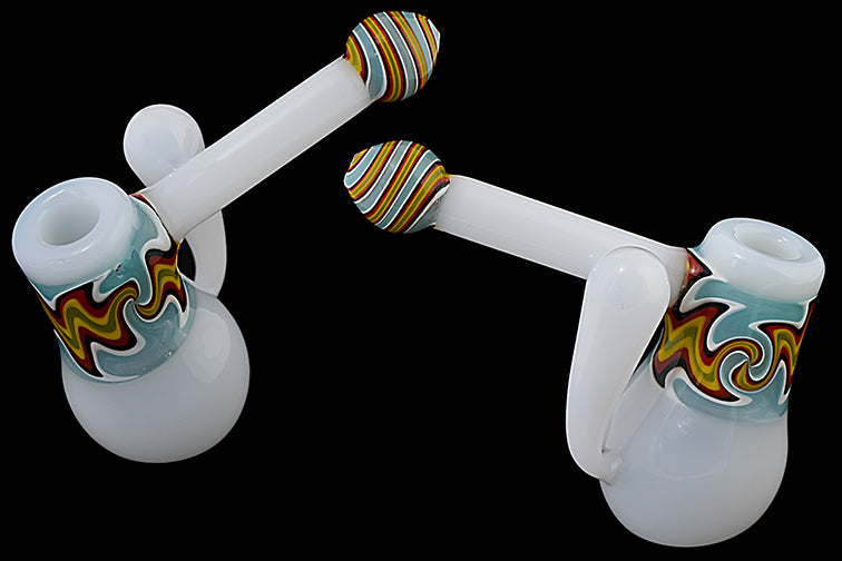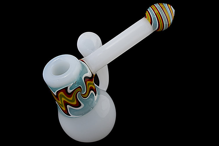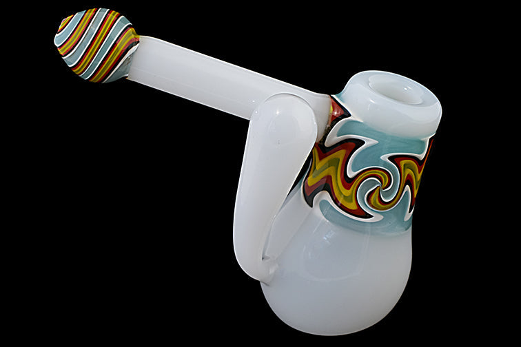 This milky-hued hammer bubbler is spruced up with wig-wag patterns to make it a snap to use - bonus side handle makes it extra comfortable for taking hits!