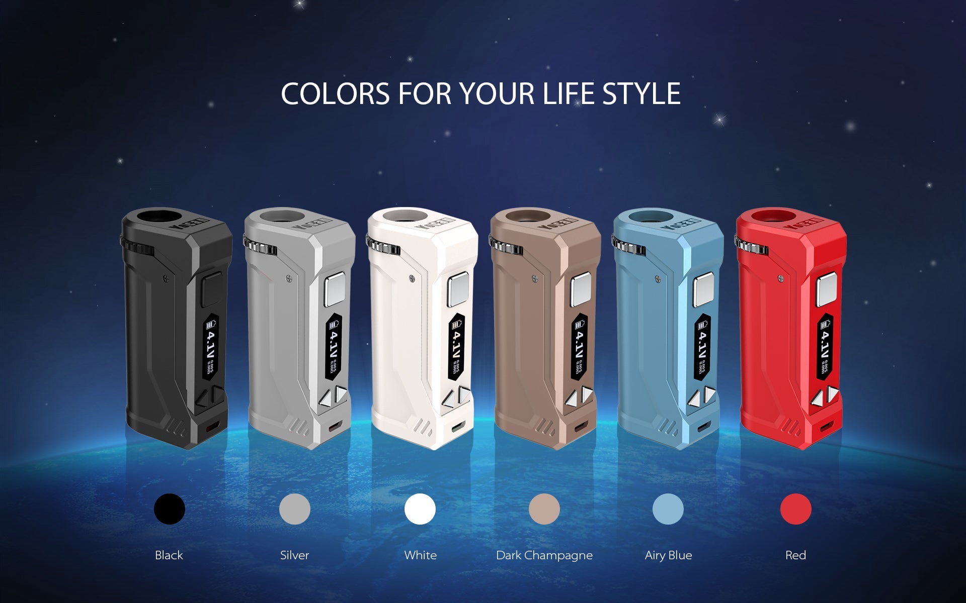 The Yocan UNI Pro is a Box Mod that features universal compatibility with all oil cartridges at all length and size, bring customization and personalization to the next level. Yocan UNI Pro is your perfect travel mate when you gotta getaway.